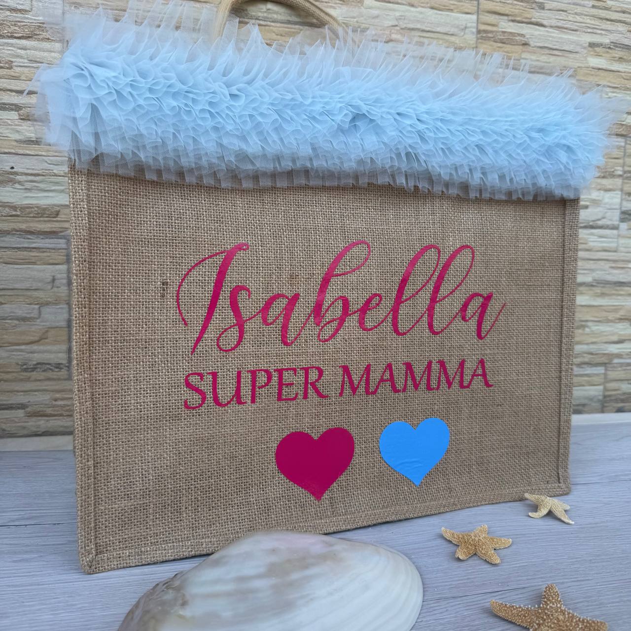 Borse Juta Mare Personalizzate con passamaneria e scritta GRANDE